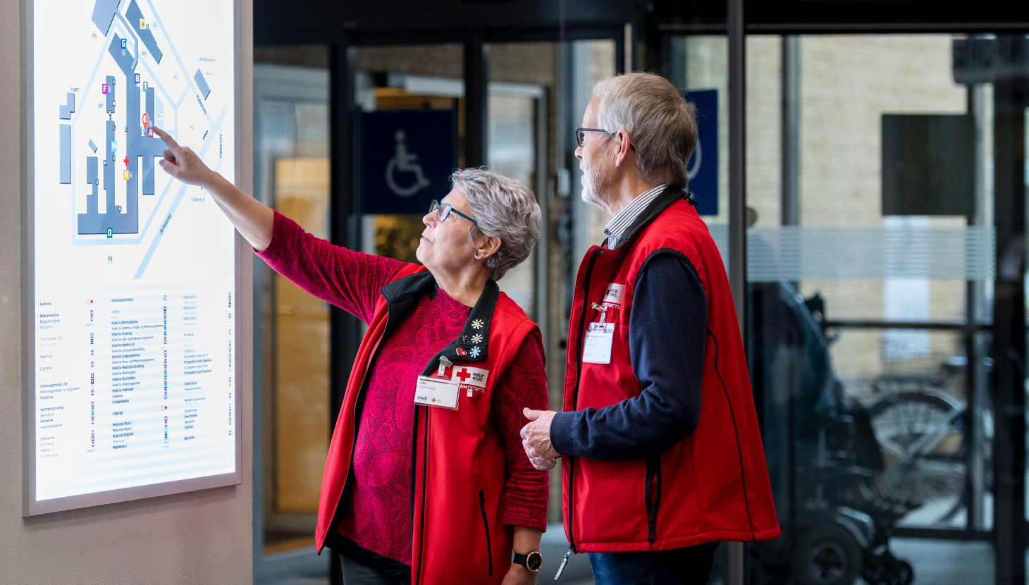 Du kan få hjælp til at finde vej på hospitalet af de frivillige guider fra Røde Kors. Guiderne står ved indgang A. Du kan kende dem på deres røde veste.